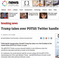 My copy written for the Press Association on Trump’s takeover of the POTUS Twitter handle, published on News.com.au Like Loading...